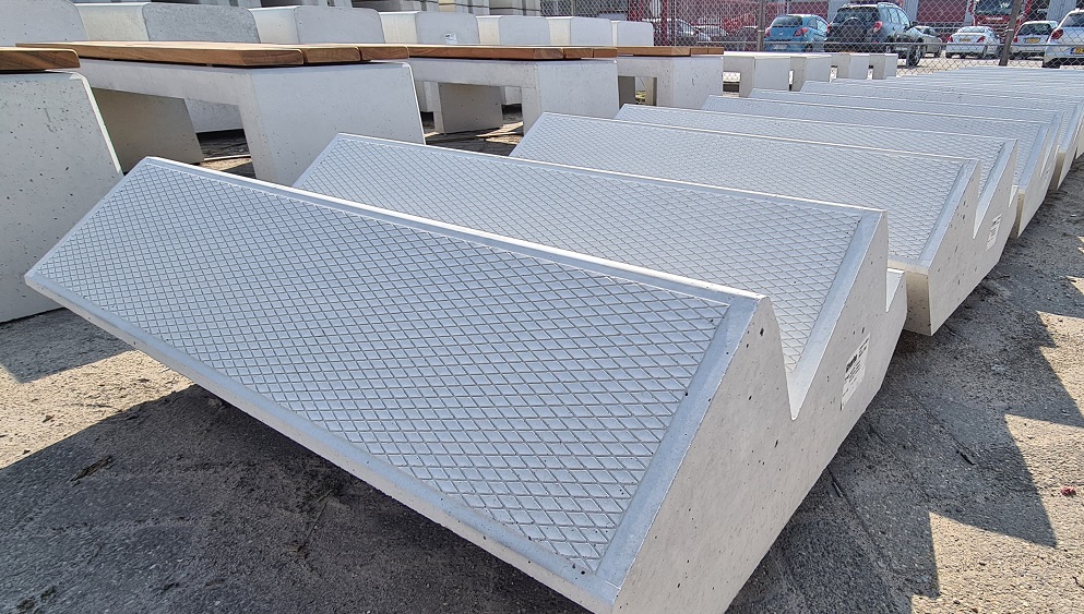 Parkbanden, zitelementen, traptreden, buitenmeubilair, rotondebanden, rotonde-rammelstroken, scheidingsbanden, enz.